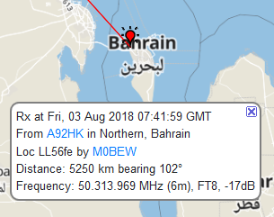 02/08/2018 50MHz FT8 Activity from PSKR M0BEW.
